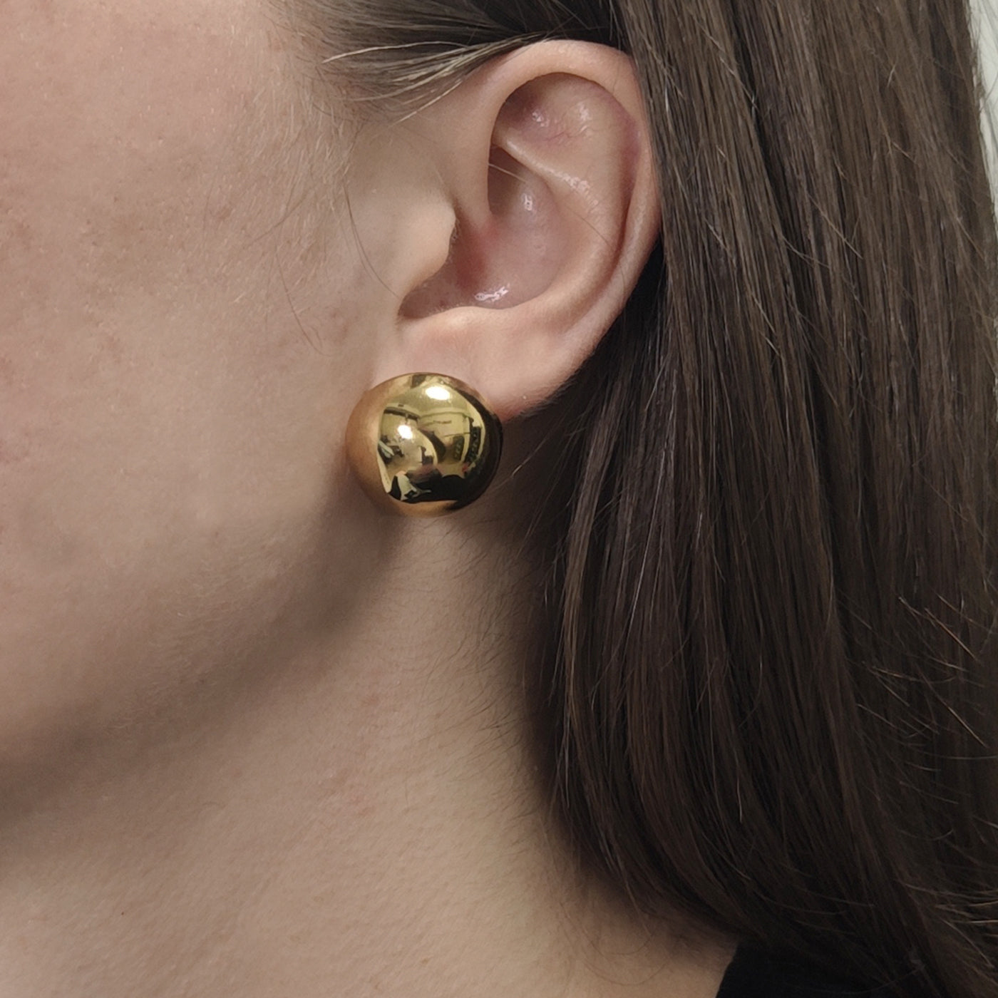 Eleganti e minimalisti, questi orecchini si distinguono per la loro forma perfettamente circolare e la superficie liscia, che cattura la luce con un effetto raffinato e moderno. Ideali per ogni occasione, si adattano sia a uno stile casual che a uno più formale, valorizzando con discrezione la bellezza di chi li indossa.